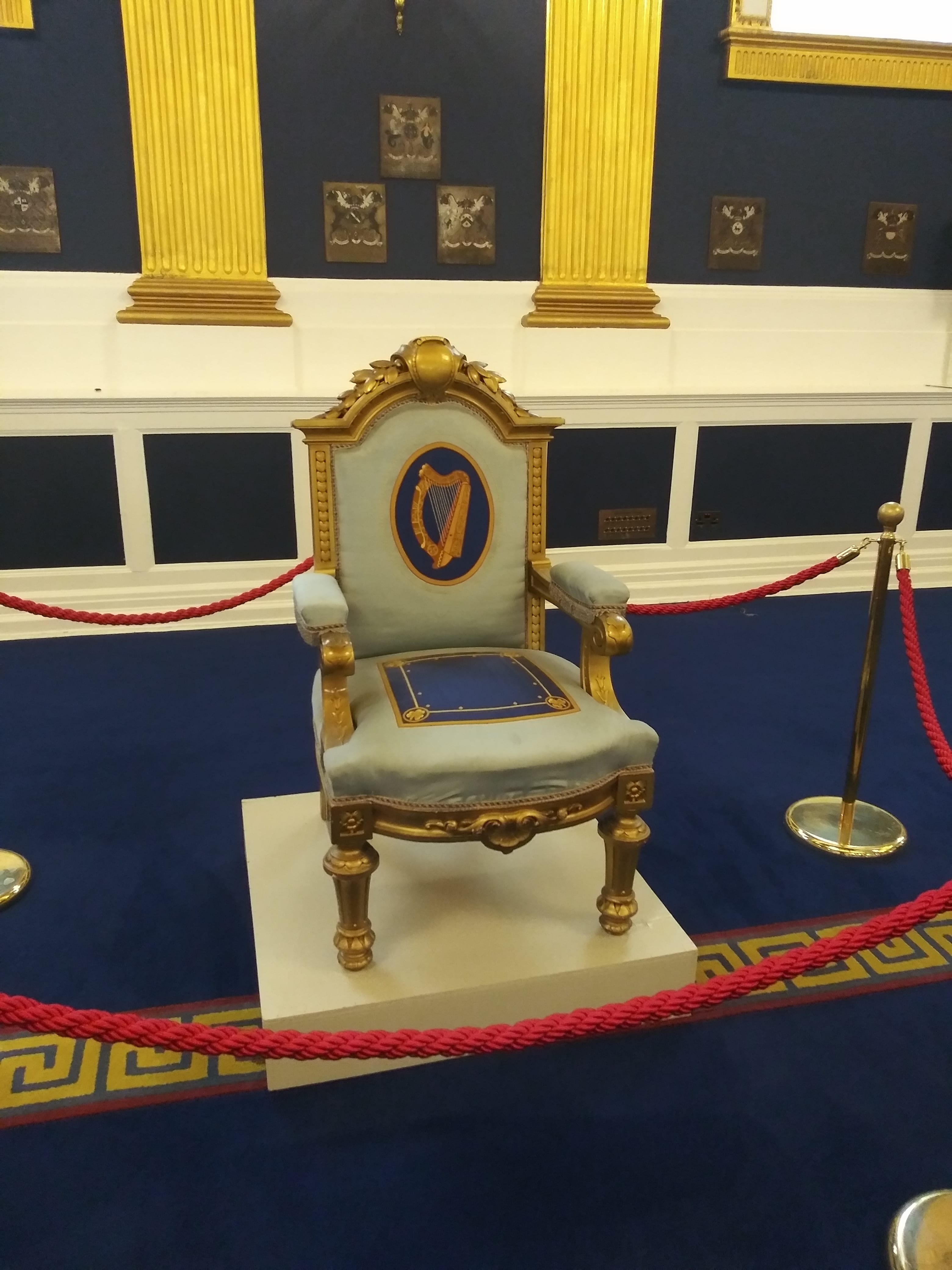 The throne on the left, I found in St. Patrick’s Hall. Which is the biggest room in the castle. It has a blue carpet on the floor. So, it’s hard to miss. I read this is the throne for the president of Ireland. Always cool to look at in person. When you are in Ireland, I definitely recommend taking a visit. It will be worth the money!